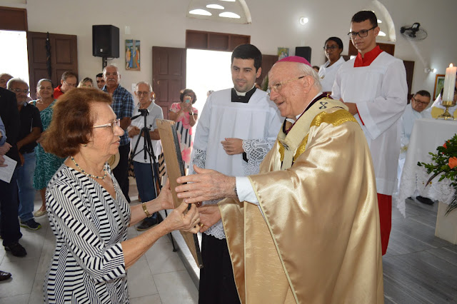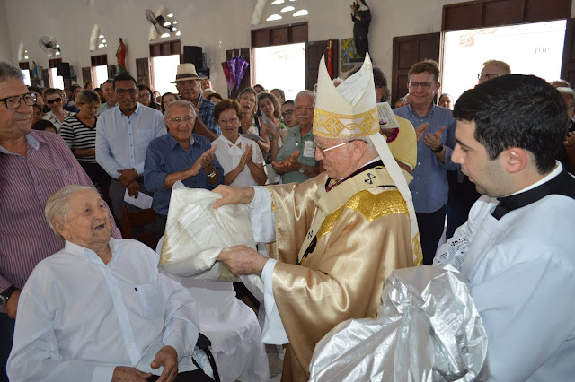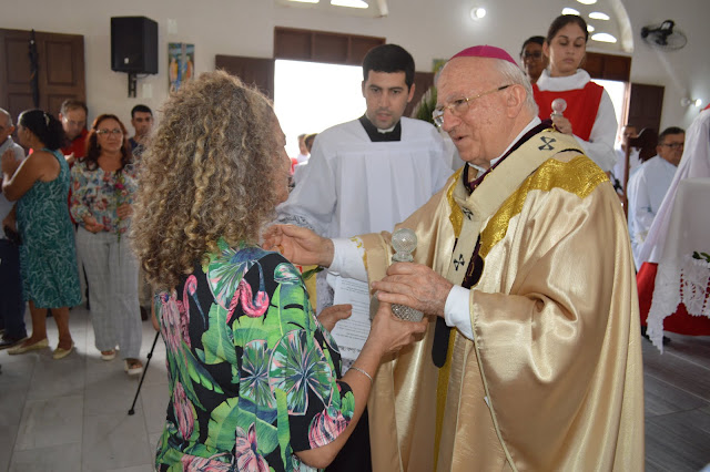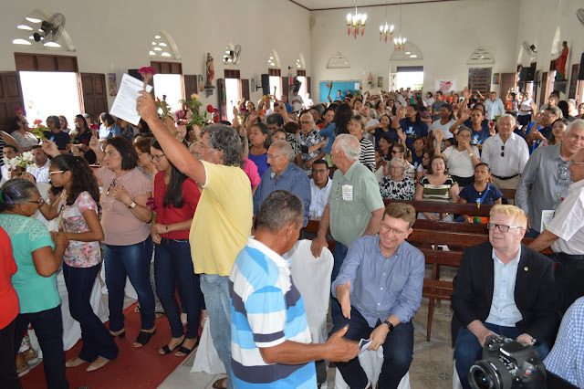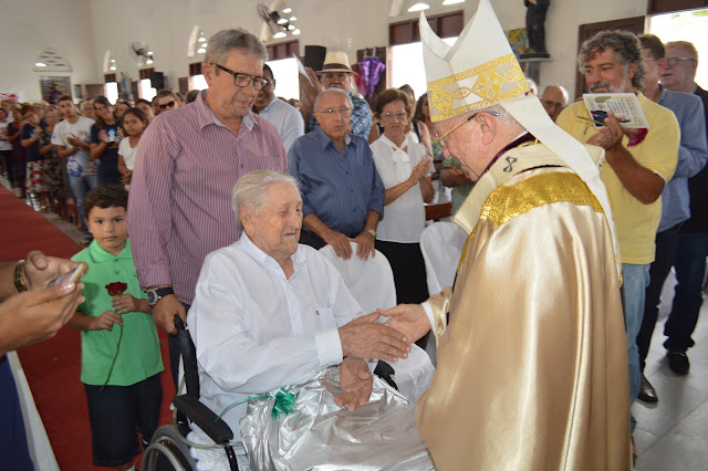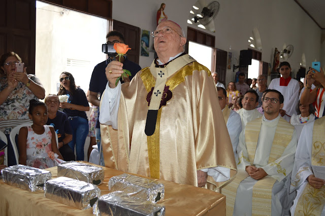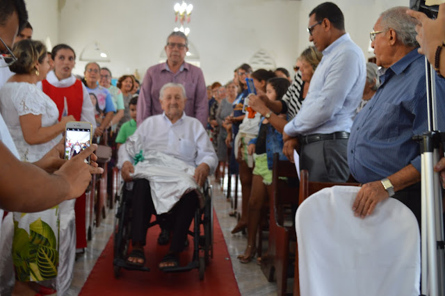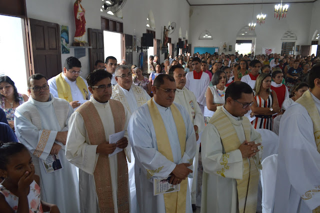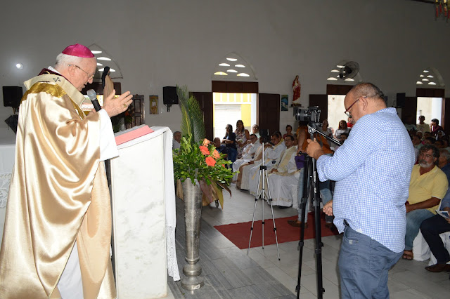 A igreja de Santa Teresinha ficou lotada, vários fiéis, amigos e familiares vieram prestigiar a Santa Missa e dar os parabéns ao filho ilustre desta terra, Dom Jaime Vieira Rocha.